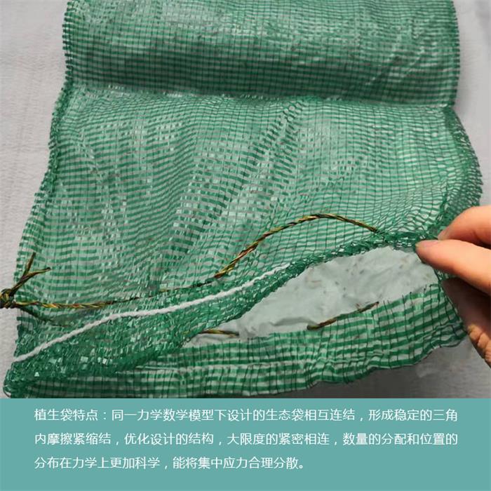 植草袋也稱為綠色袋,草袋由無紡布和遮陽網(wǎng)制成。它具有出色的抗紫外線性,長久的耐用性,良好的透水性和透氣性。3D水土保持護(hù)坡綠化系統(tǒng)由"種植袋+連接扣+植被種植"通過穩(wěn)定的三角形疊加法形成,后來發(fā)展的根系滲透到生態(tài)袋中使邊坡的土壤變邊坡更穩(wěn)定。